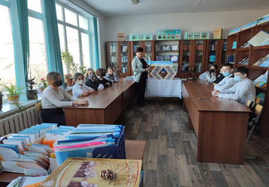 24 февраля в целях развития профориентационной работы в 6 "Г" классе было организовано встреча с замечательными профессионалами своего дела " Библиотекарями" нашей школы Откелбаевой С. В ходе встречи она рассказала о фонде книг школы, было показано множество литературных и энциклопедический книг.Дети с интересом слушали и смогли посмотреть библиотеку.Кл.руковадитель: Юлдашева Айгуль Кувандековна.