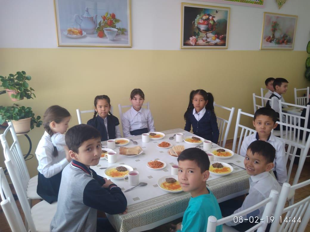 Мектепте тегін ыстық тамақпен 2020 жылдың 09-қаңтарынан бастап Жетім және ата-анасының қамқорлығынсыз қалған ,толық емес, көп балалы және аз қамтылған 137 оқушы тамақтанып жүр, оның ішінде 17 оқушы арендатер есебінен тамақтанады.